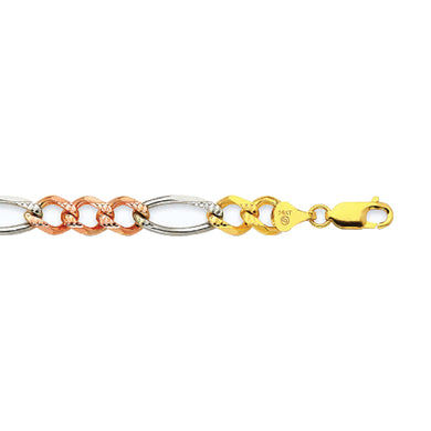 14K 8MM TRICOLOR GOLD SOLID FIGARO 24" CHAIN NECKLACE (AVAILABLE IN LENGTHS 7" - 30")