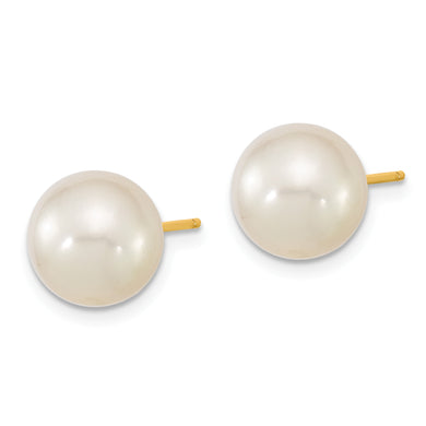 14k 9-10mm White Round Saltwater Cultured South Sea Pearl Post Earrings