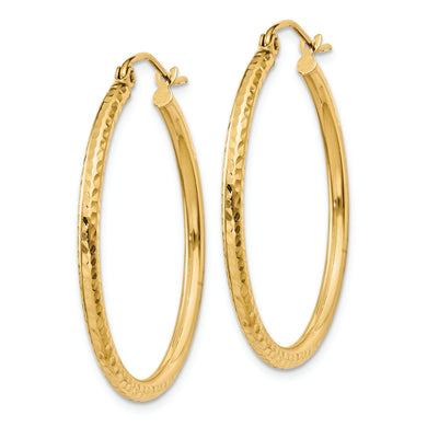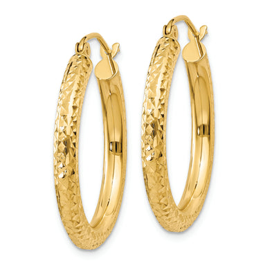 14K Diamond-cut 2.8x15mm Hollow Hoop Earrings