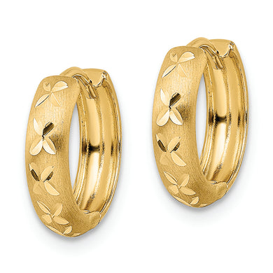 14k Diamond-cut X Satin 3x13mm Hinged Hoop Earrings