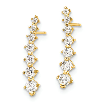 14K Polished White Rhodium CZ Double Circle Post Earrings