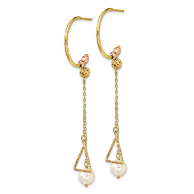 14K Two Tone D/C Freshwater Cultured Pearls Dangle Earrings