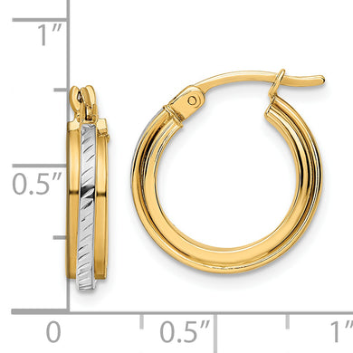14K w/White and Rose Rhodium Polished and Textured Hoop Earrings
