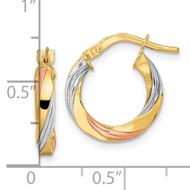 14K W/Rose & White Rhodium Polished Twisted Hoop Earrings