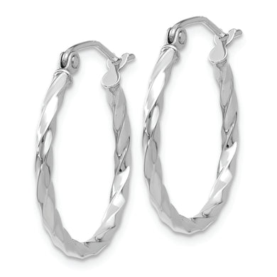 14k White & Rose Rhodium Satin Twisted Hoop Earrings