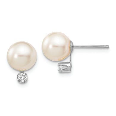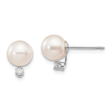 14K White Gold 7-8mm Round White Saltwater Akoya .10ct. Diamond Earrings