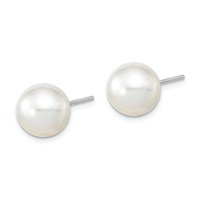 14K White Gold 9-10mm Round White Saltwater Akoya Cultured Pearl Earrings
