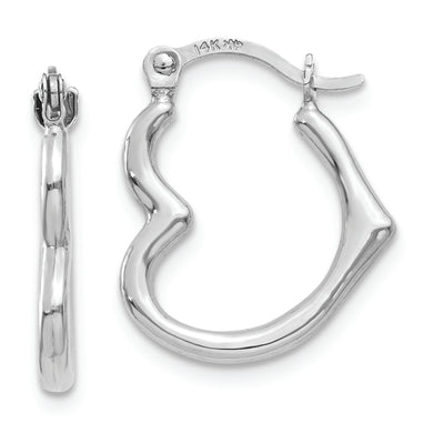 14K White Gold Heart Shaped Hollow Hoop Earrings