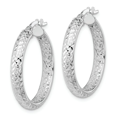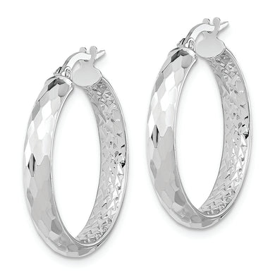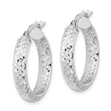 14K White Gold Polished and Textured Diamond-cut Inside Fancy Hoop Earrings