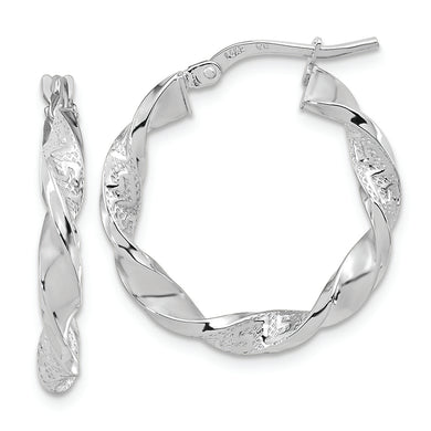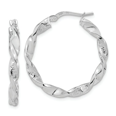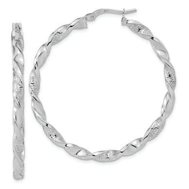 14k White Gold Polished and Textured Twisted Hoop Earrings