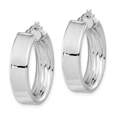 14K White Gold Polished and Diamond-cut Inside and Out Fancy Hoop Earrings