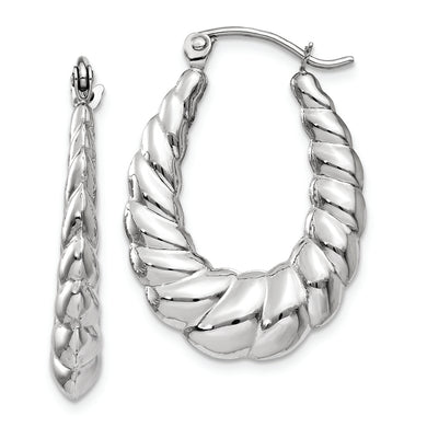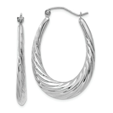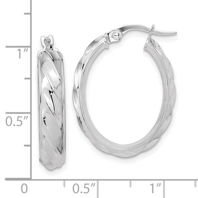 14K White Gold Polished and Twisted Oval Hoop Earrings