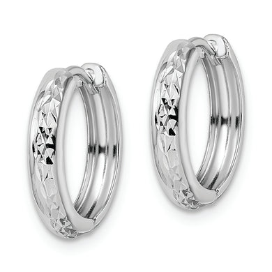14k White Gold Polished Textured 3x15mm Hinged Hoop Earrings