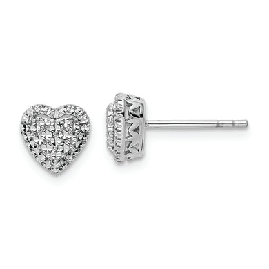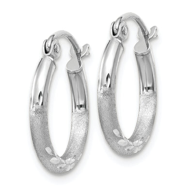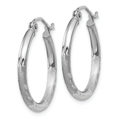 14k White Gold Satin and Diamond-cut 2mm Round Hoop Earrings