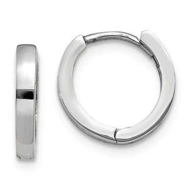 14k White Rhodium Polished Diamond-cut 3mm Circle Hoop Earrings