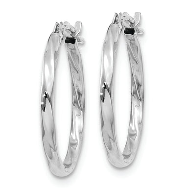 14K White Gold w/ Rose Rhodium Polished and Textured Hoop Earrings