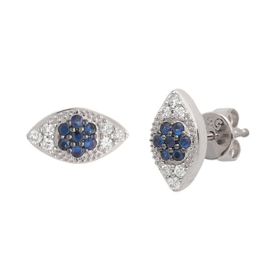 14KW 0.10CTW DIAMOND EVIL-EYE EARRINGS W/
