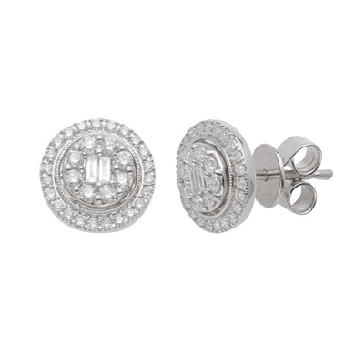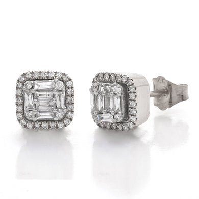 14KW 0.50CTW BAGUETTE DIAMOND HALO EARRINGS
