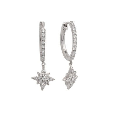 14KW 0.50CTW DIAMOND DANGLING CROSS HOOP EARRINGS