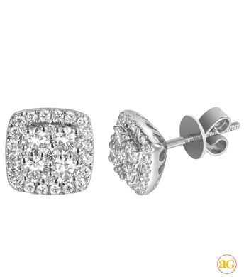 14KW 1.00CTW DIAMOND SQUARE SHAPED CLUSTER EARRING