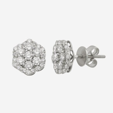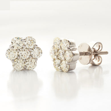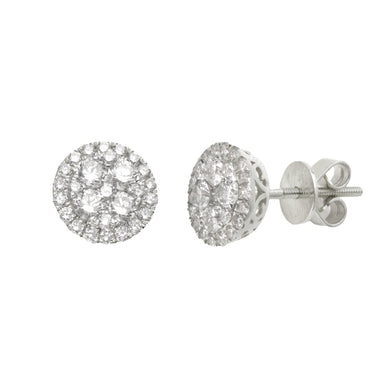 14KW 1.15CTW DIAMOND ROUND CLUSTER EARRINGS -