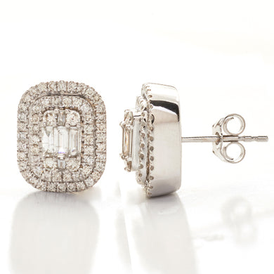14KW 1.10CTW BAGUETTE DIAMOND HALO EARRINGS