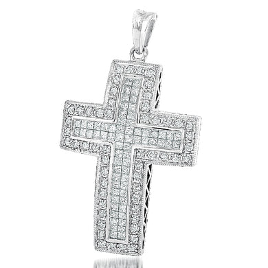14KW 2.00CTW DIAMOND PYRAMID SETTING CROSS PENDANT