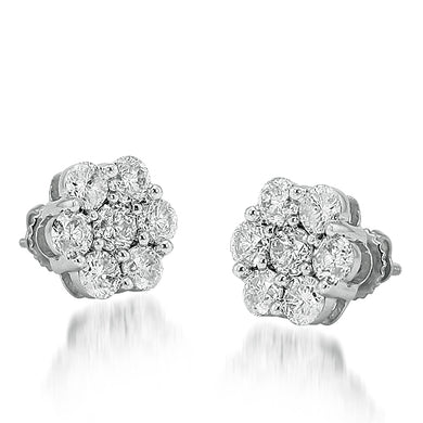 14KW 2.00CTW DIAMOND FLOWER EARRINGS WITH SINGLE