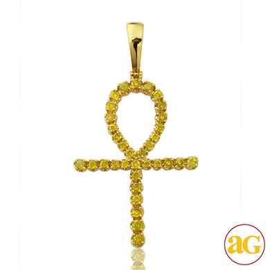 10KY 2.00CTW YELLOW DIAMOND ANKH CROSS PENDANT
