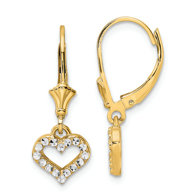 14k & White Rhodium D/C Floral Turtle Leverback Earrings