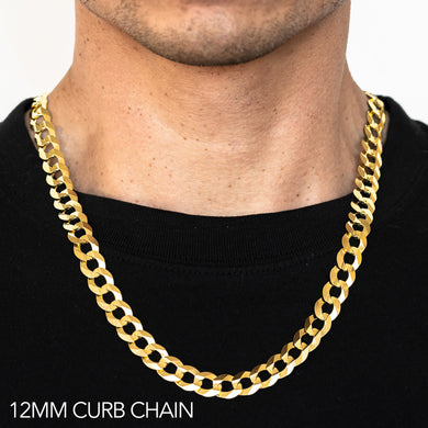 14K 12MM YELLOW GOLD SOLID CURB 24" CHAIN NECKLACE (AVAILABLE IN LENGTHS 7" - 30")