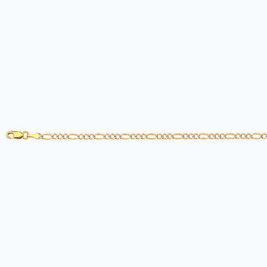14K 2.5MM YELLOW GOLD SOLID PAVE FIGARO 18" CHAIN NECKLACE (AVAILABLE IN LENGTHS 7" - 30")