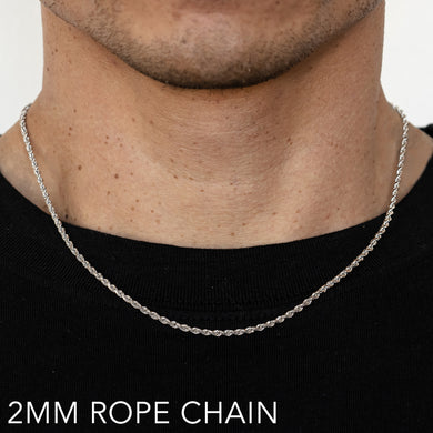 14K 2MM WHITE GOLD SOLID DC ROPE 24" CHAIN NECKLACE (AVAILABLE IN LENGTHS 7" - 30")