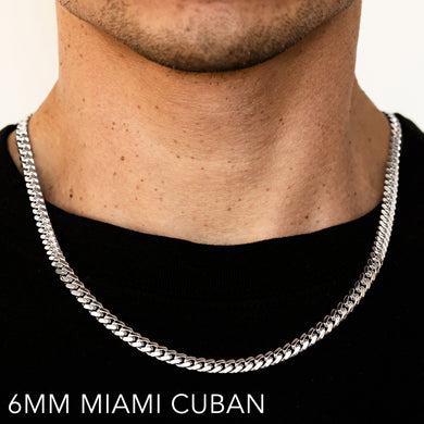 14K 6MM WHITE GOLD SOLID MIAMI CUBAN 24" CHAIN NECKLACE (AVAILABLE IN LENGTHS 7" - 30")