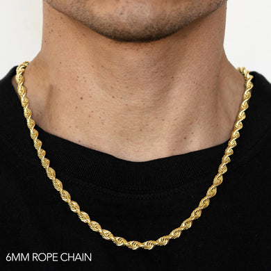 14K 6MM YELLOW GOLD SOLID DC ROPE 24" CHAIN NECKLACE (AVAILABLE IN LENGTHS 7" - 30")