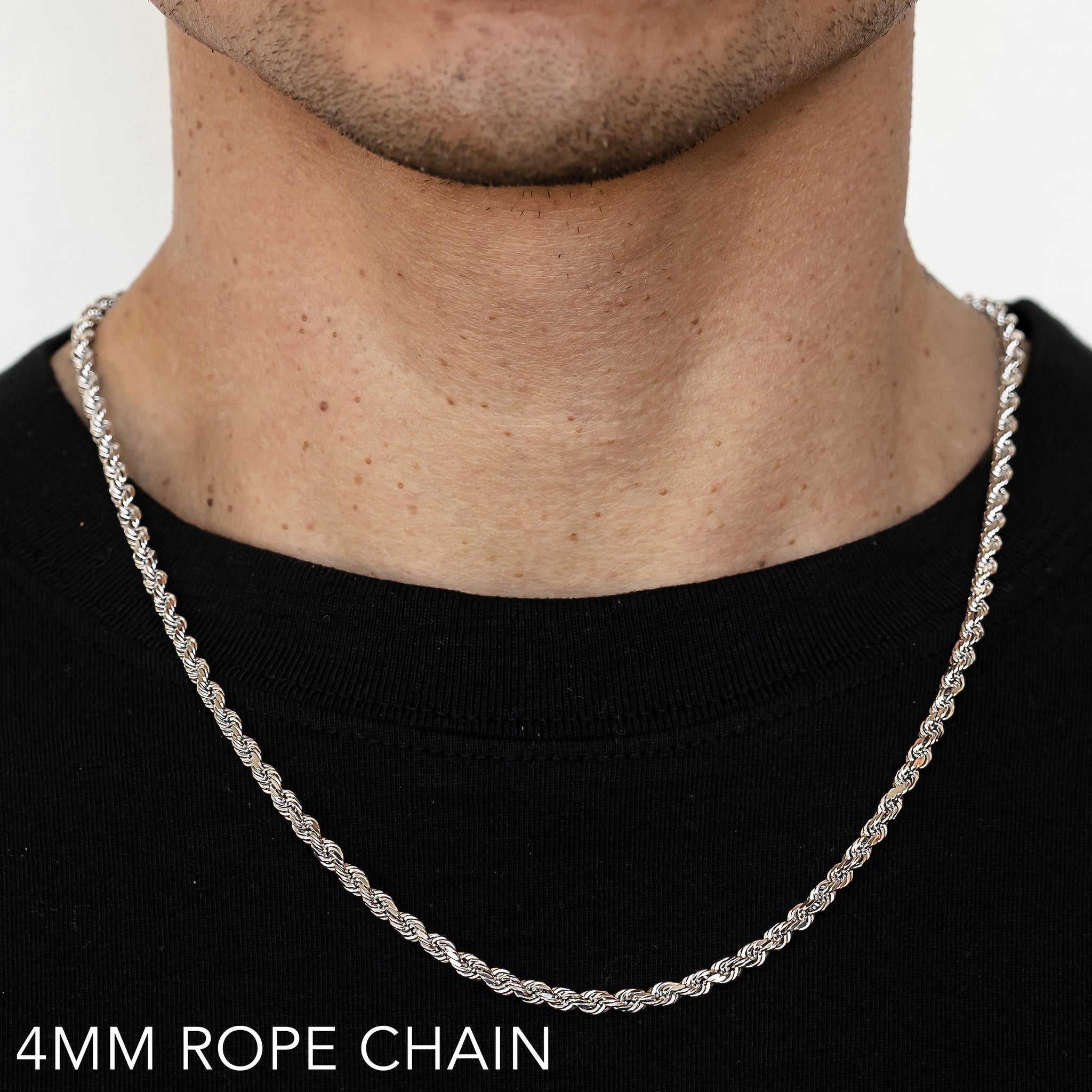 This 10 Karat White Gold Diamond Cut Solid Rope Chain is a classic chain that is loved worldwide. Made with authentic 10k White gold, this chain has small links that have been twisted into a rope-like style, which make them very durable. This chain comes with various lengths that will match your preference. This chain weights approximately 1.18 grams per inches and may not be exact.