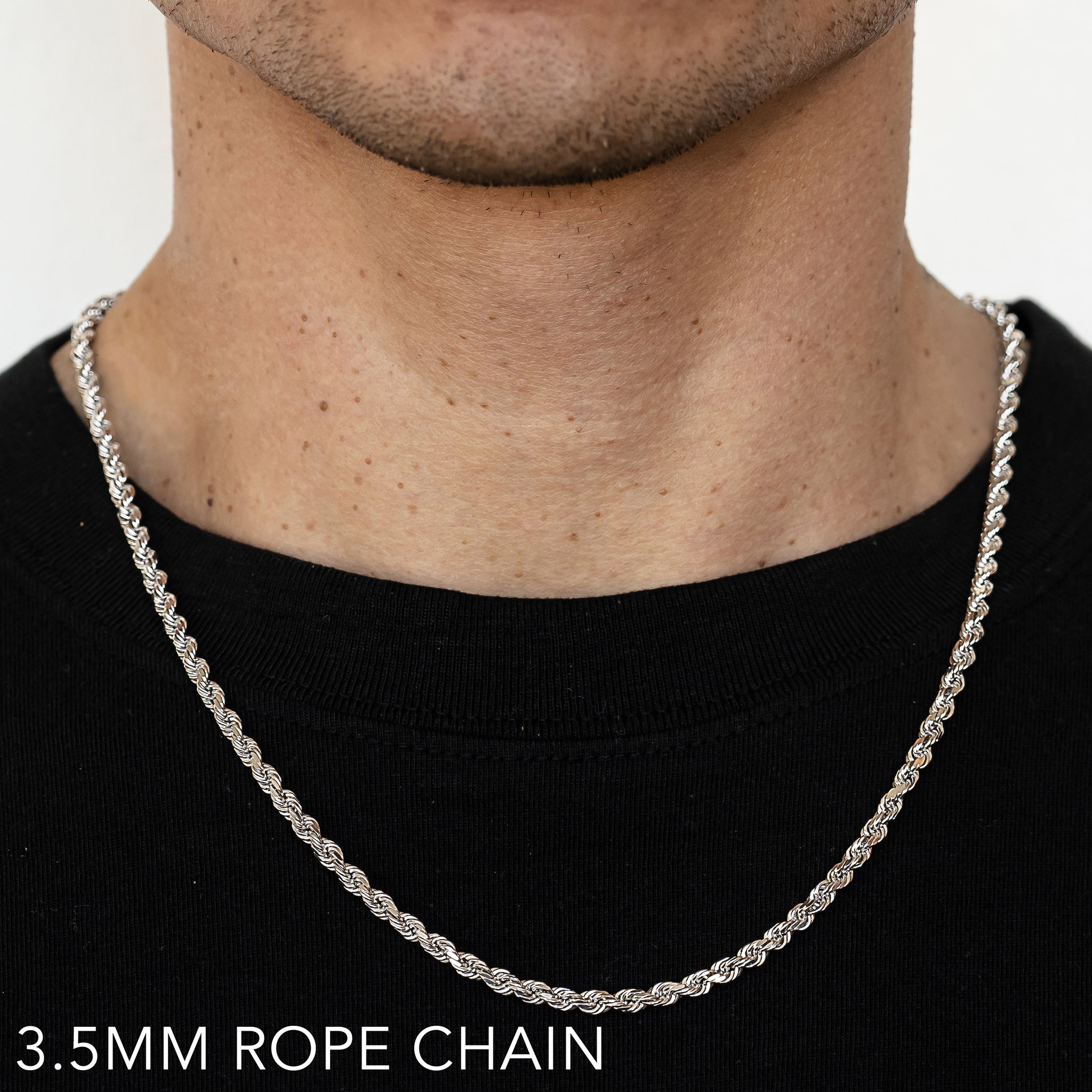 14K 3.5MM WHITE GOLD SOLID DC ROPE 24" CHAIN NECKLACE (AVAILABLE IN LENGTHS 7" - 30")