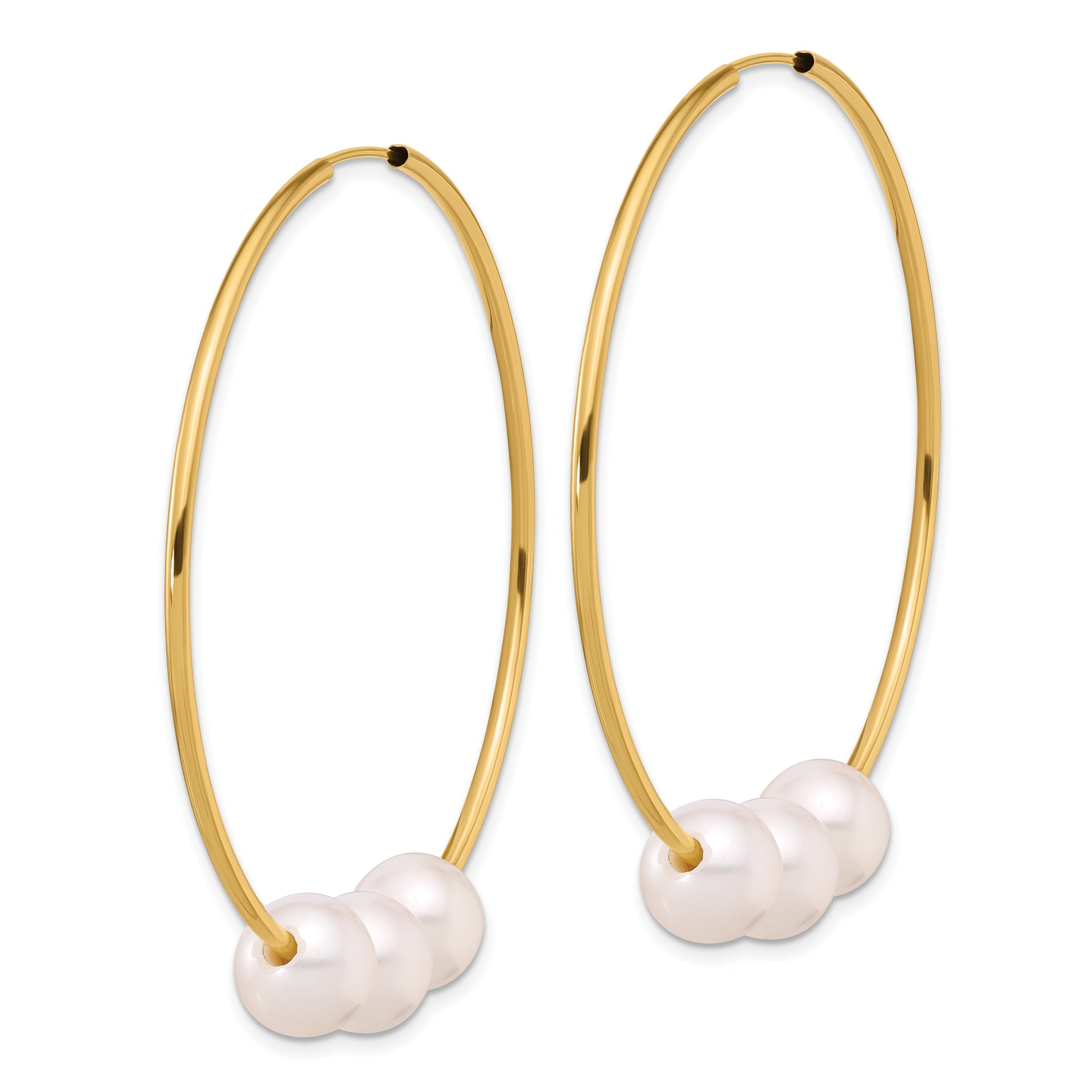 14K 8-9mm White Round Freshwater Cultured Pearl Infinity Hoop Earrings