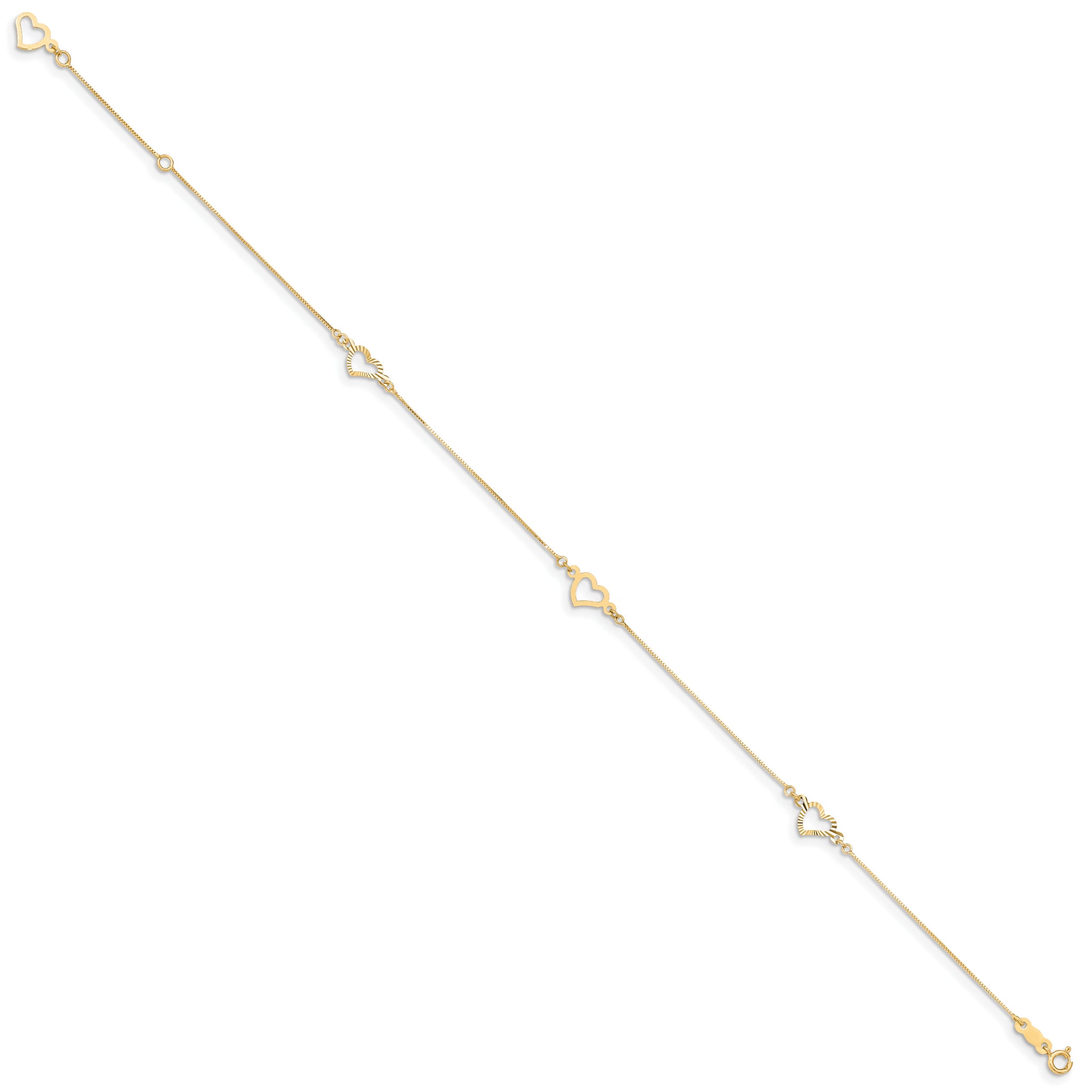 14K Adjustable Fancy Heart 9in Plus 1in Ext. Anklet