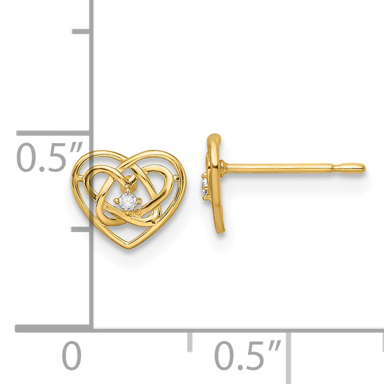 • Load image into Gallery viewer, 14k CZ Trinity Heart Post Earrings