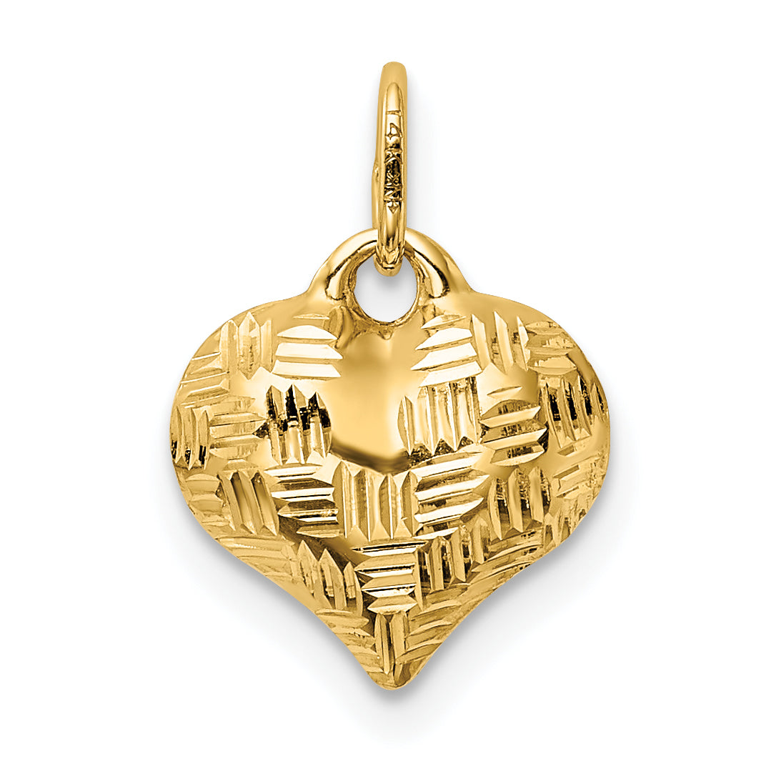 14K Polished Basket Weave Pattern 3-D Heart Pendant
