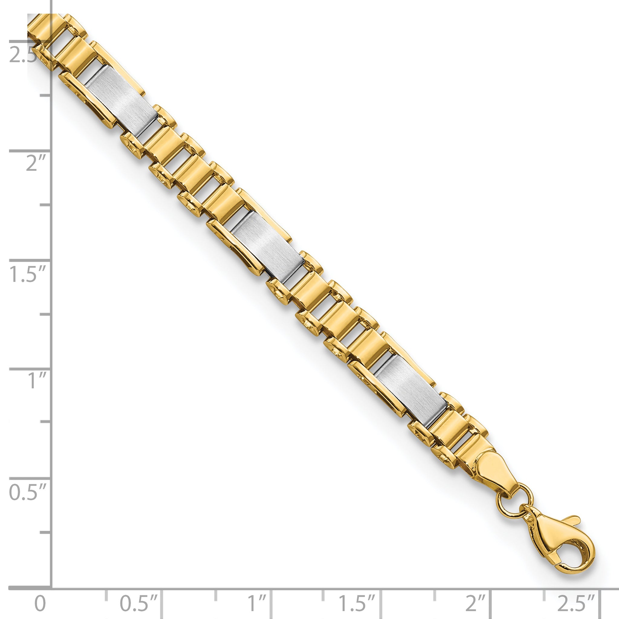 14k Two-tone Brushed and Polished Fancy Link 8in Bracelet