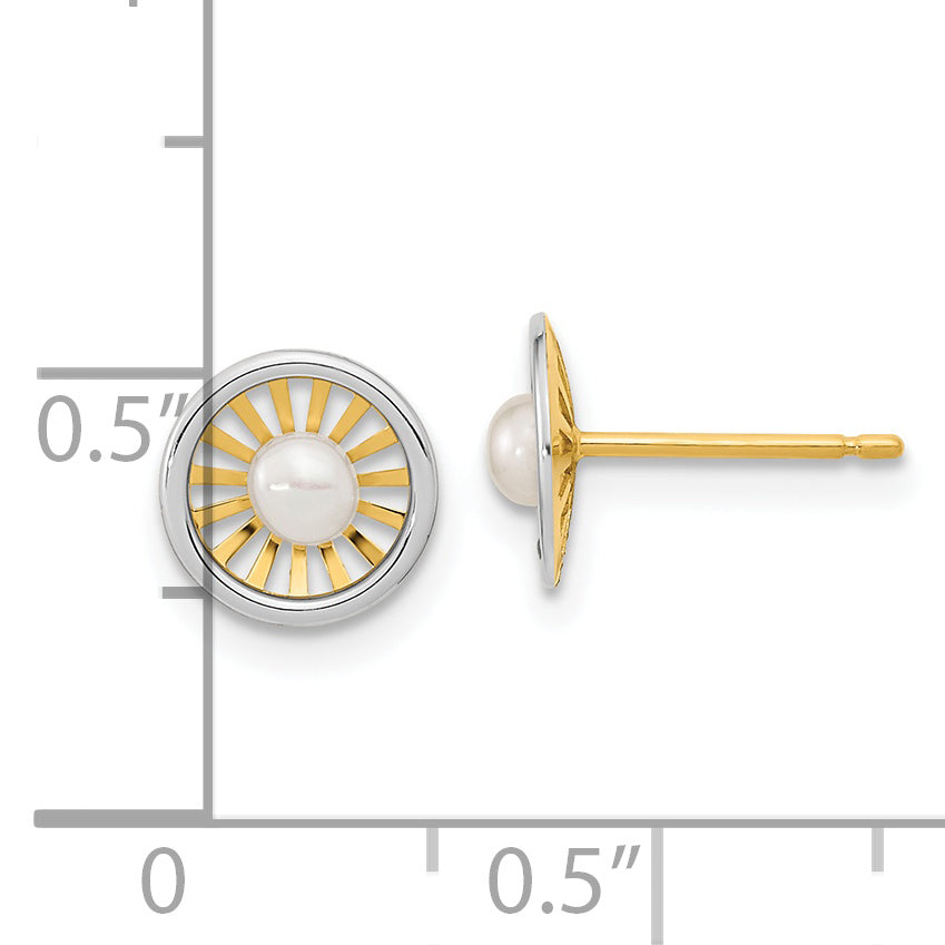 14K Two-tone Madi K 3-3.5mm Freshwater Cultured Pearl Post Earrings