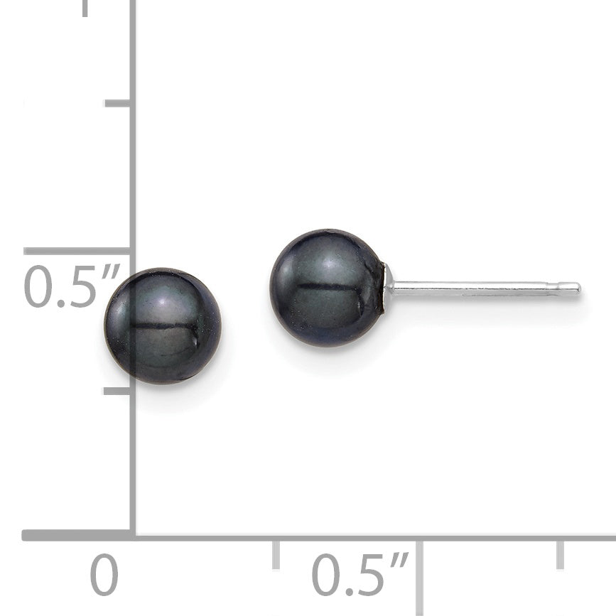 14k White Gold 5-6mm Black Round Akoya Saltwater Cultured Post Earrings