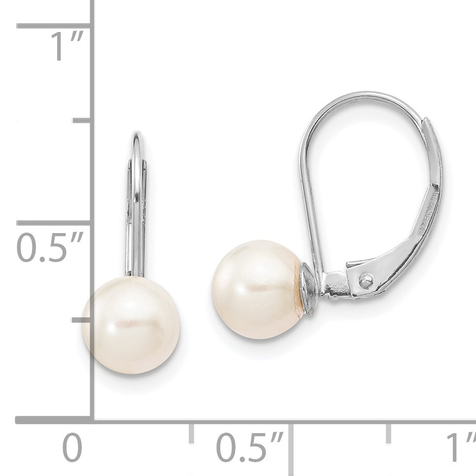 14K White Gold 6-7mm Round White Akoya Pearl Leverback Earrings
