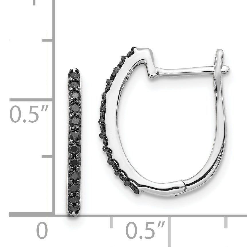 14k White Gold Black Diamond 1.3mm Hinged Hoop Earrings