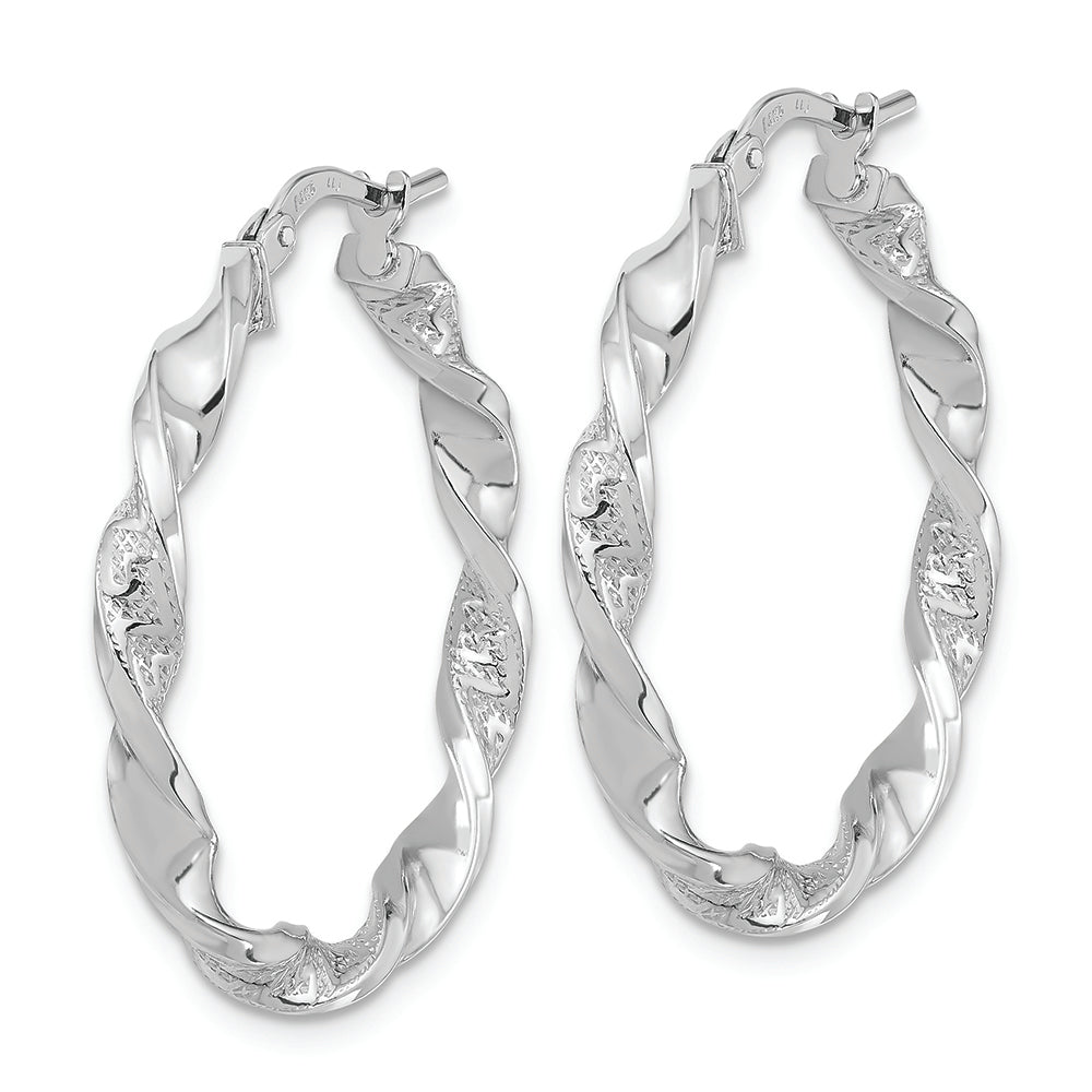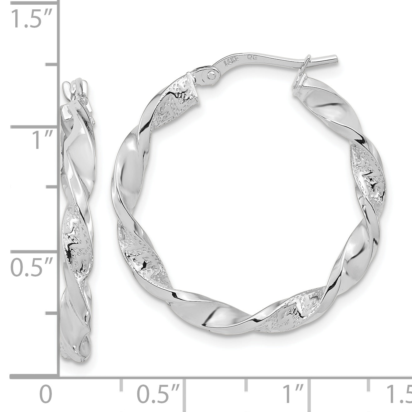 14k White Gold Polished and Textured Twisted Hoop Earrings