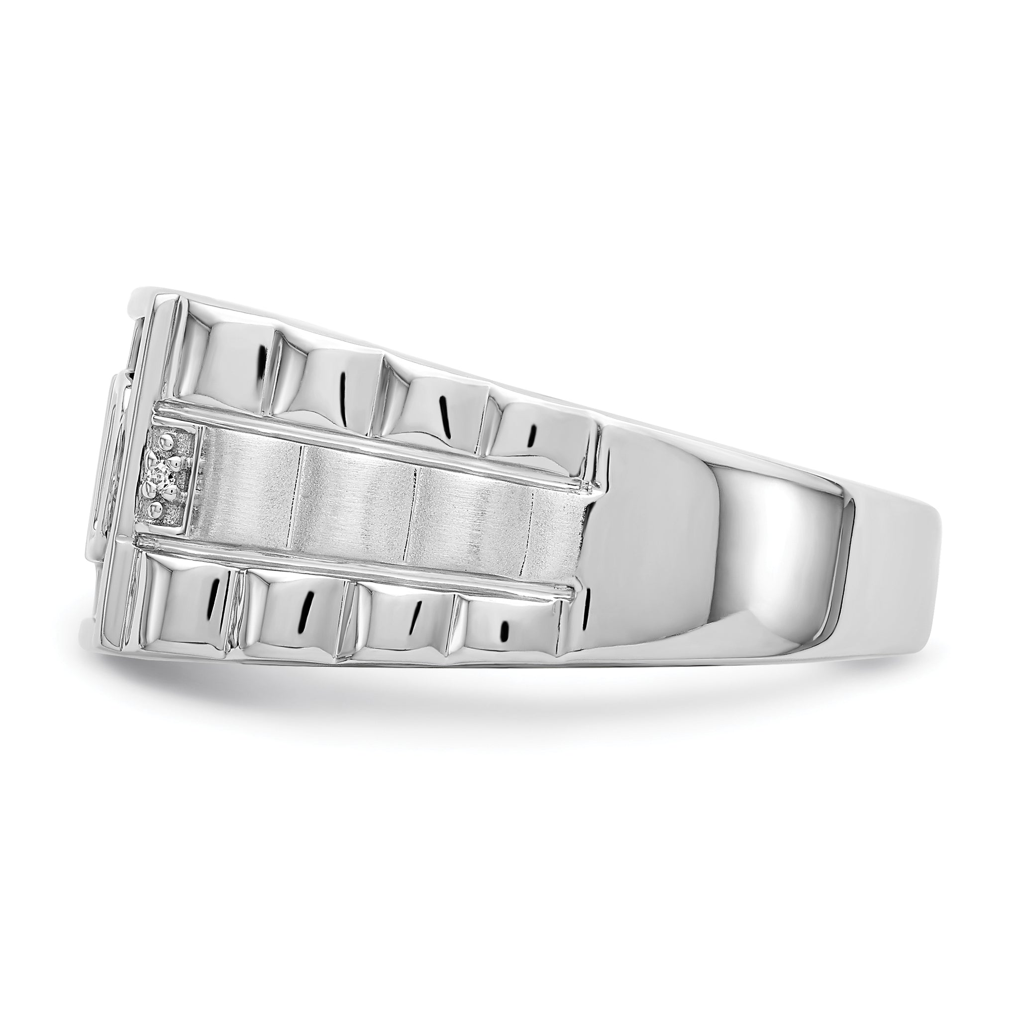 14k White Gold Polished & Satin Onyx & Diamond DAD Mens Ring