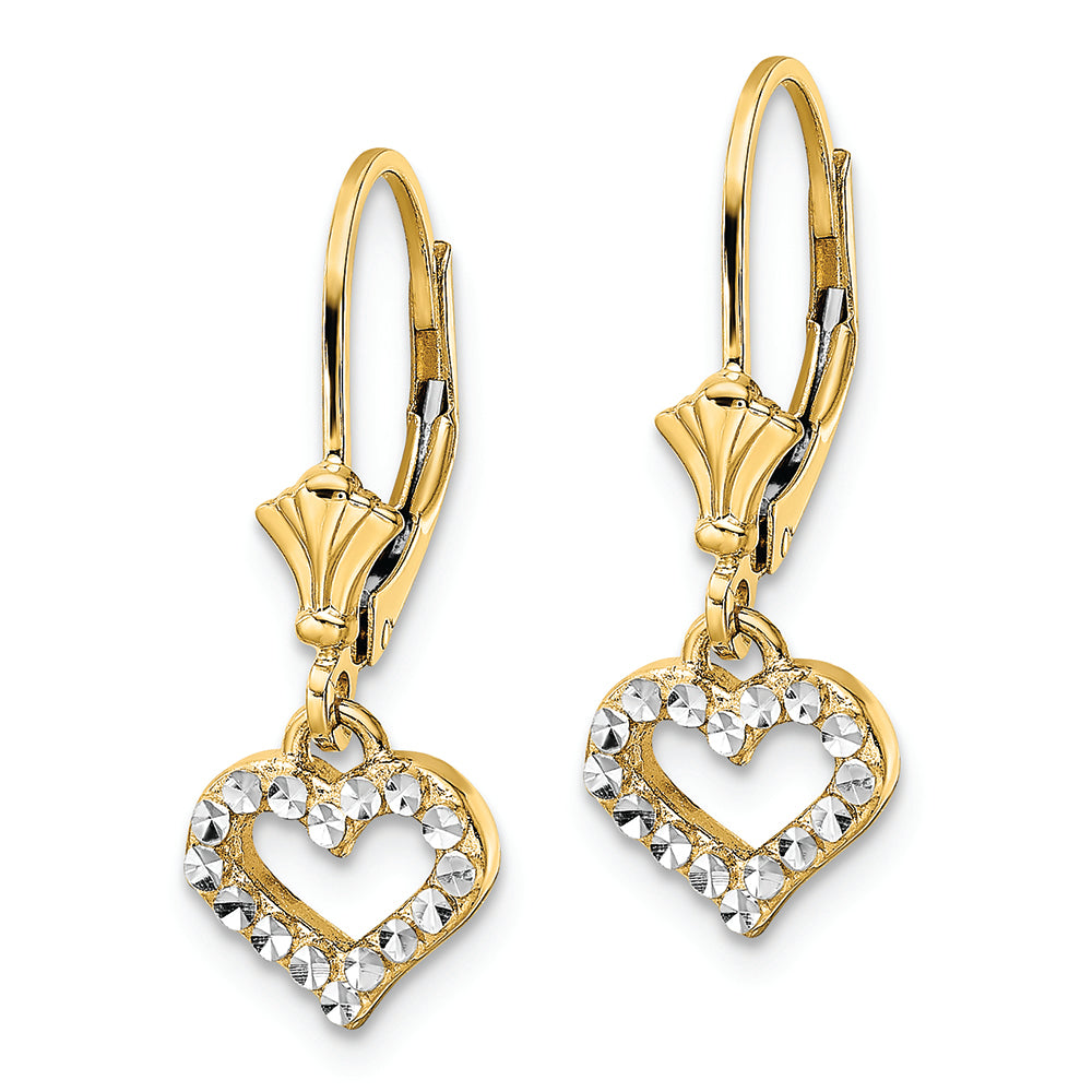 14k & White Rhodium D/C Heart Leverback Earrings