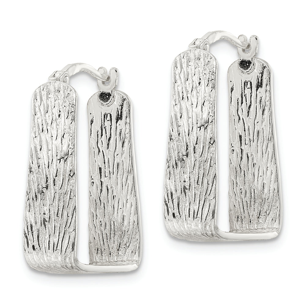 Sterling Silver Textured 5.5mm Square Hoop Earrings